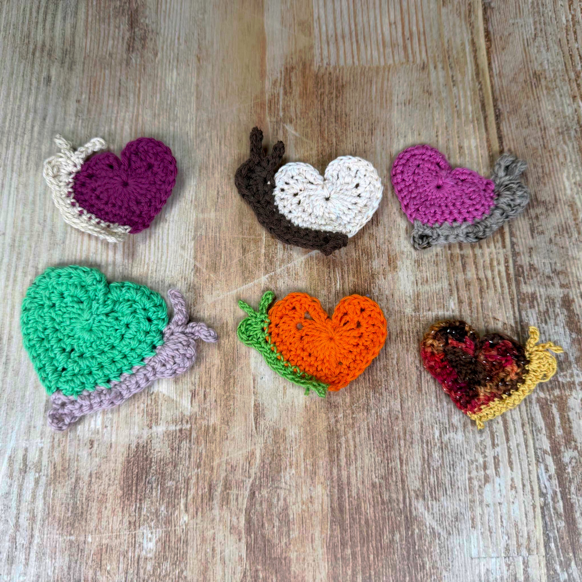 Handgestrickte Herz-Schneggli in verschiedenen Farbkombinationen – das perfekte Accessoire für persönliche Dekoration oder als liebevolle Zugabe zu Geschenken und Grußkarten. Jedes Stück ist ein Unikat und verleiht jedem Anlass eine persönliche Note.