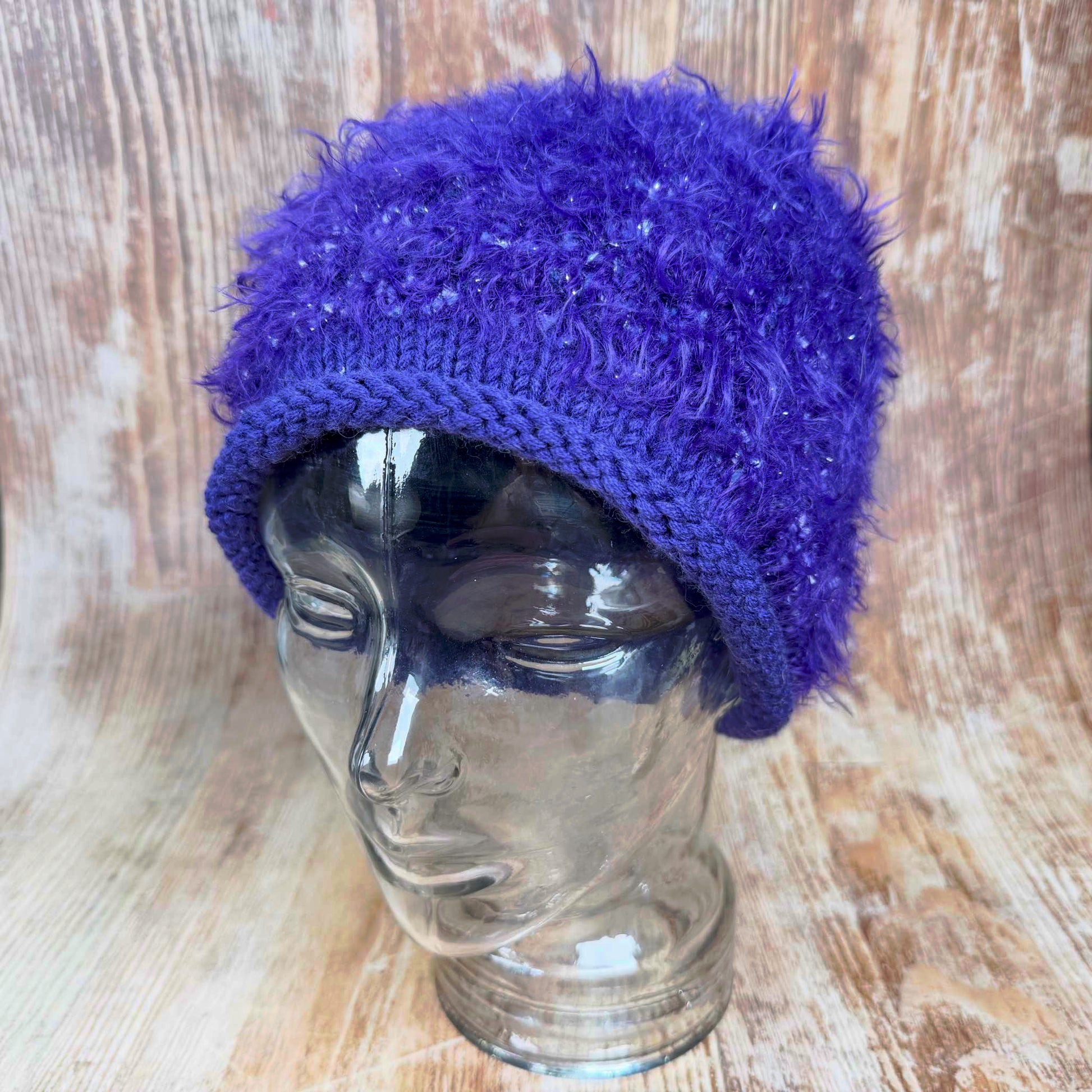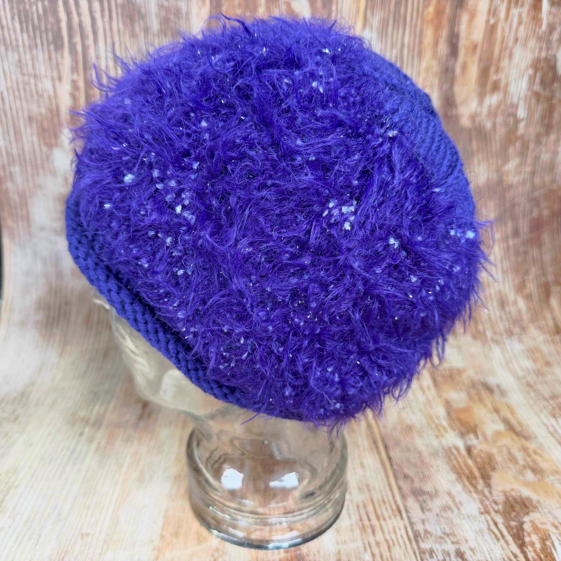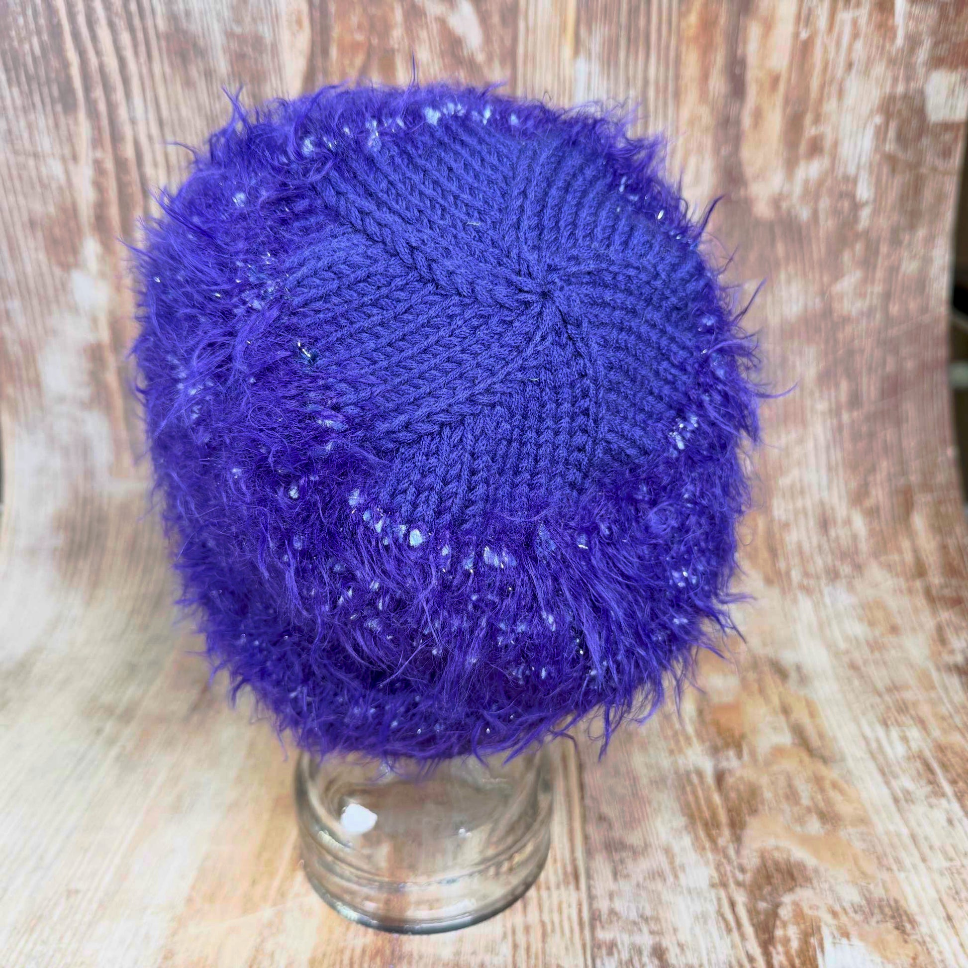 Kuschelige Wärmespender für kalte Tage: Diese handgestrickte Kappe in strahlendem Violett kombiniert klassischen Stil mit modernem Glanz.