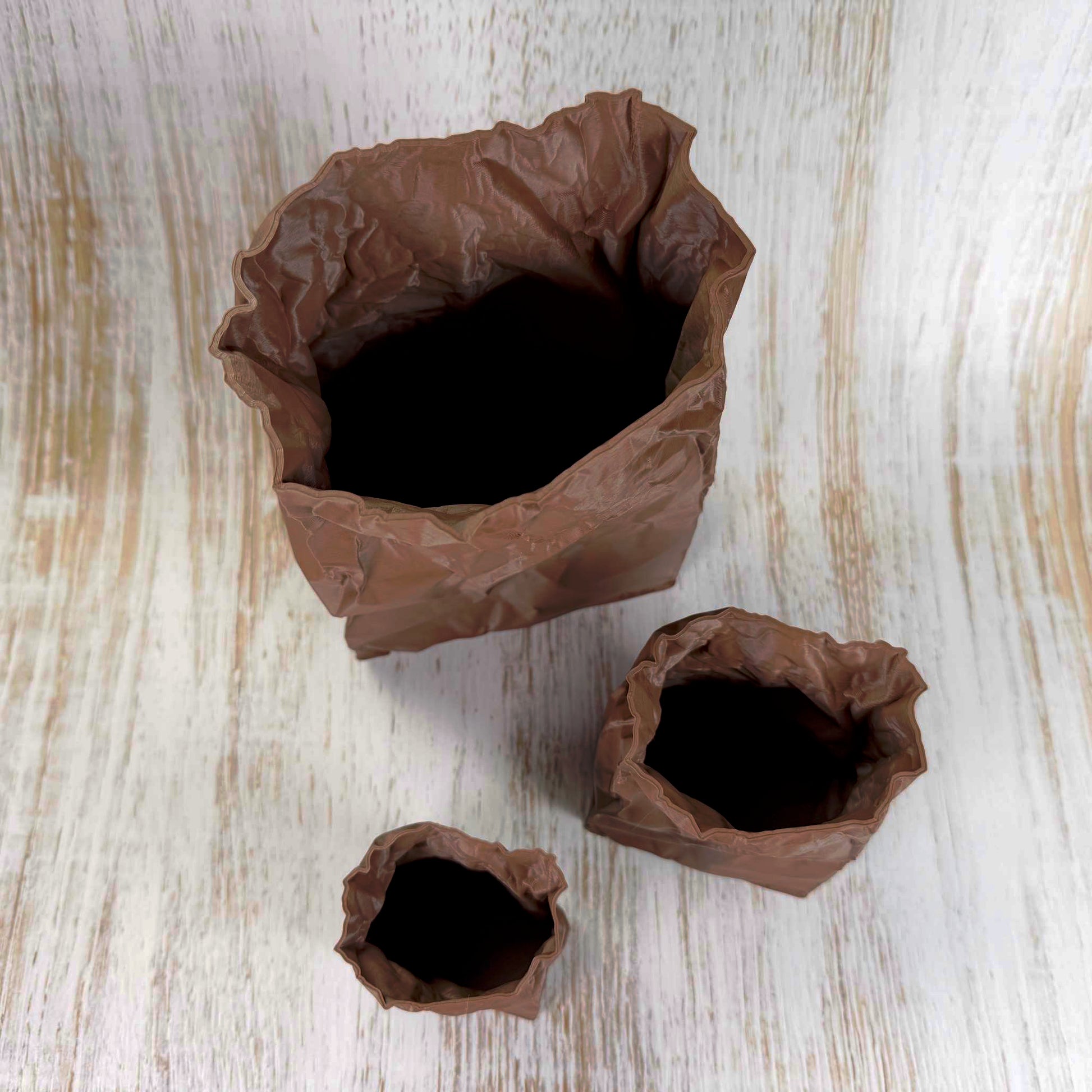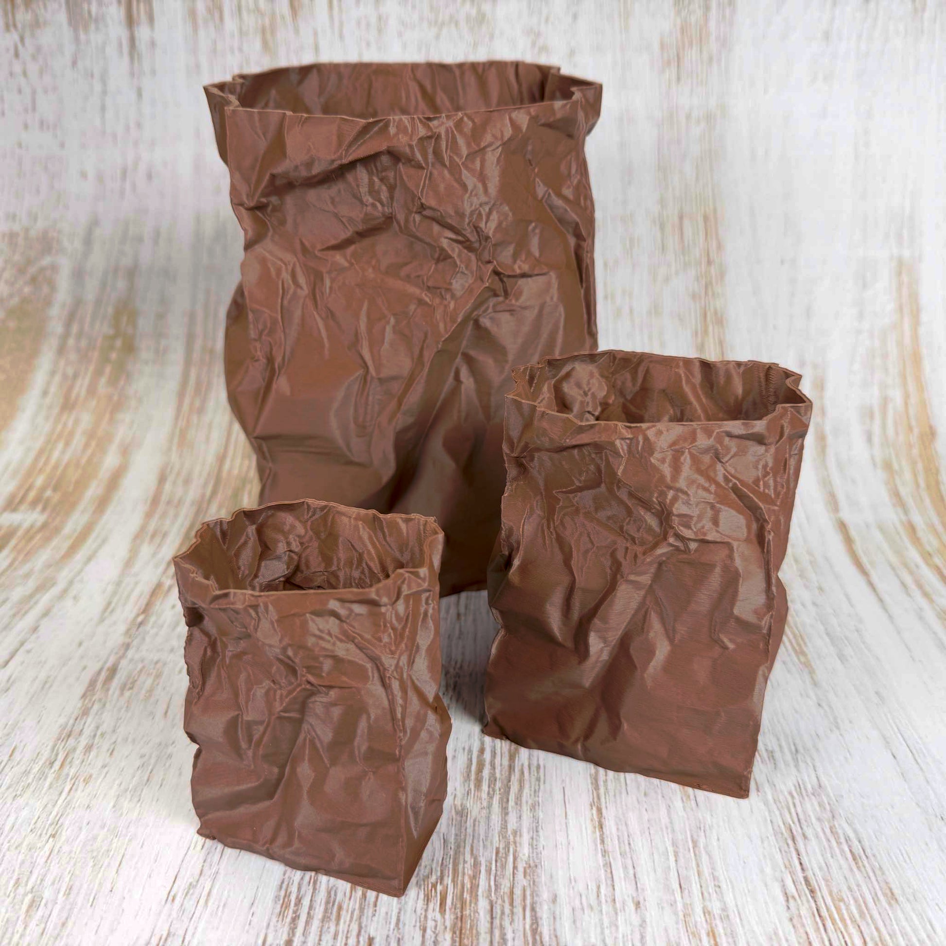 Der Scarnuz ist ein 3D-gedrucktes Deko- und Aufbewahrungselement, das optisch an die traditionelle Papiertüte erinnert. Der Name stammt aus dem Rhätoromanischen, in dem “Scarnuz” schlicht Papiertüte bedeutet. Das Design nimmt die typische zerknitterte Form dieser Tüten auf und kombiniert sie mit moderner 3D-Druck-Optik.