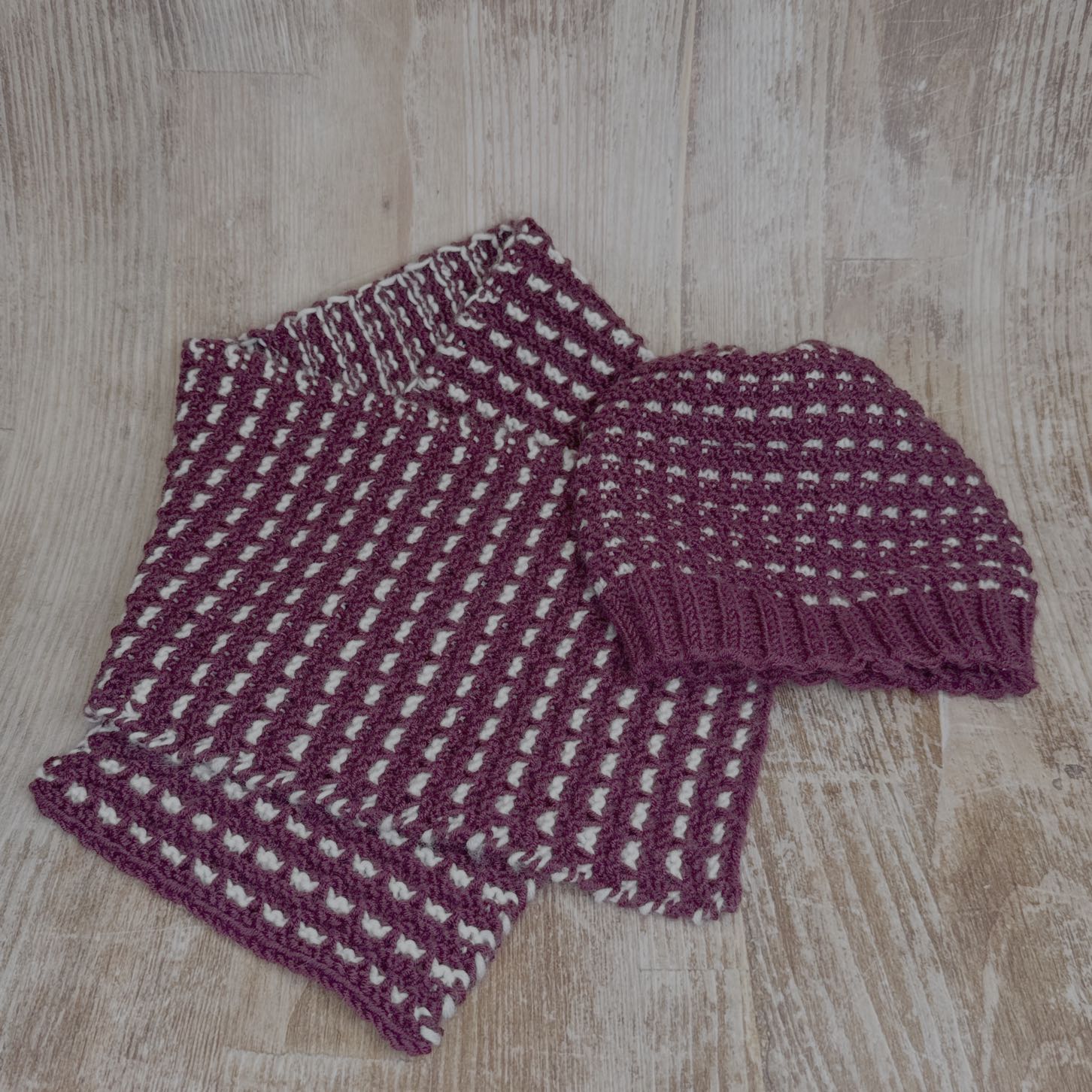 Wärmeschutz trifft auf Handwerkskunst: Diese handgestrickte Schlinge und Kappe bilden ein unschlagbares Winter-Set.