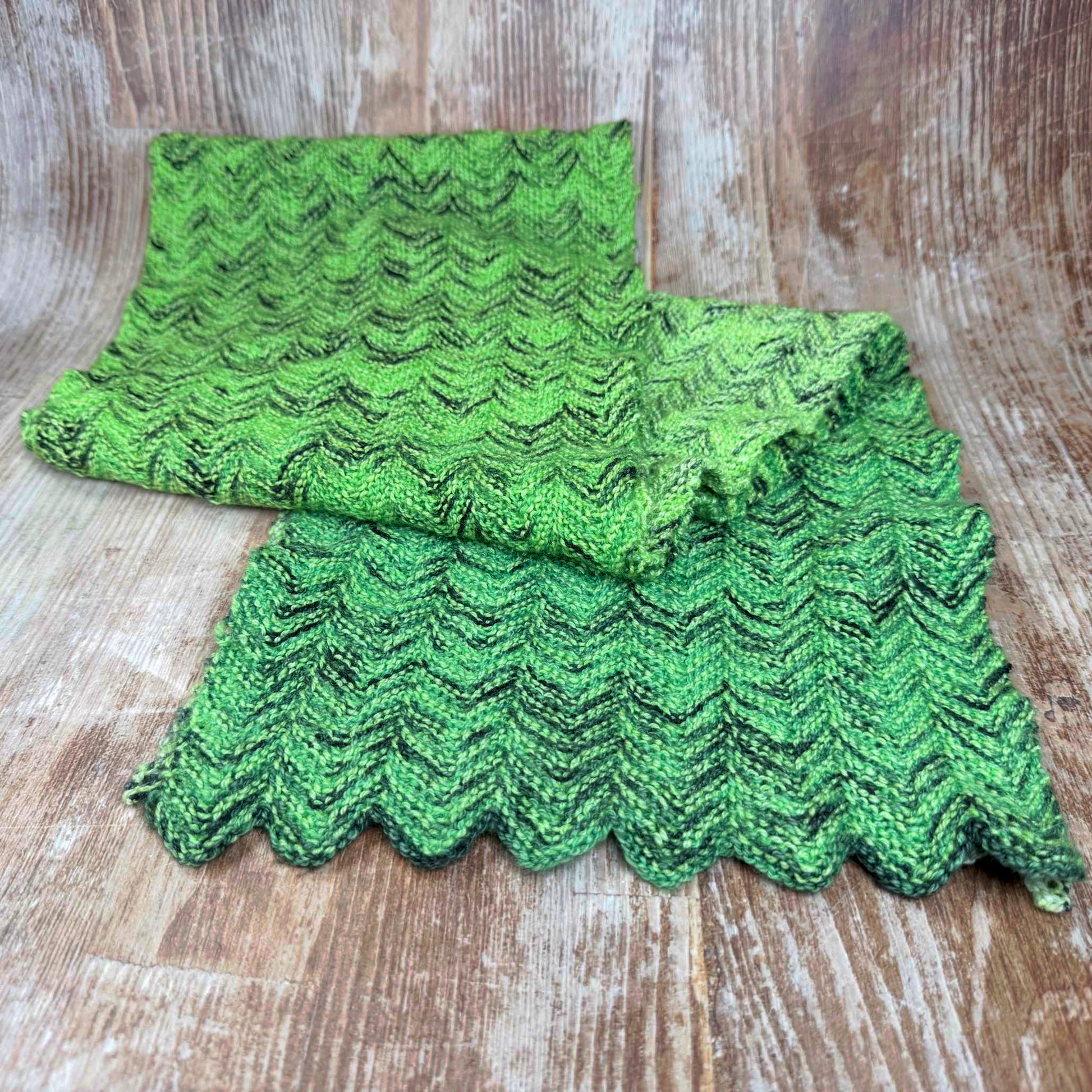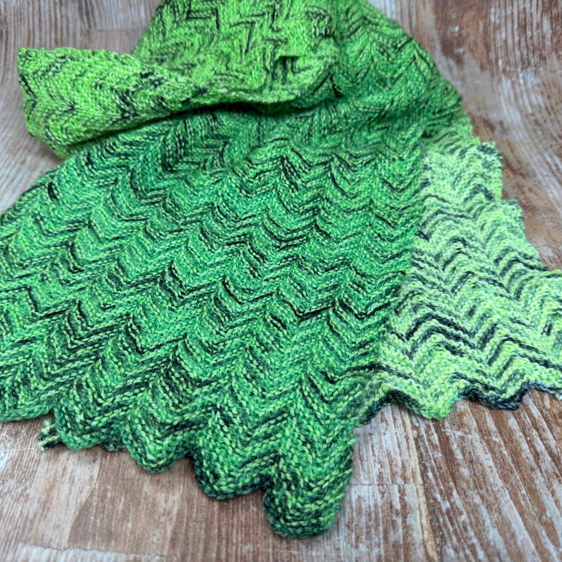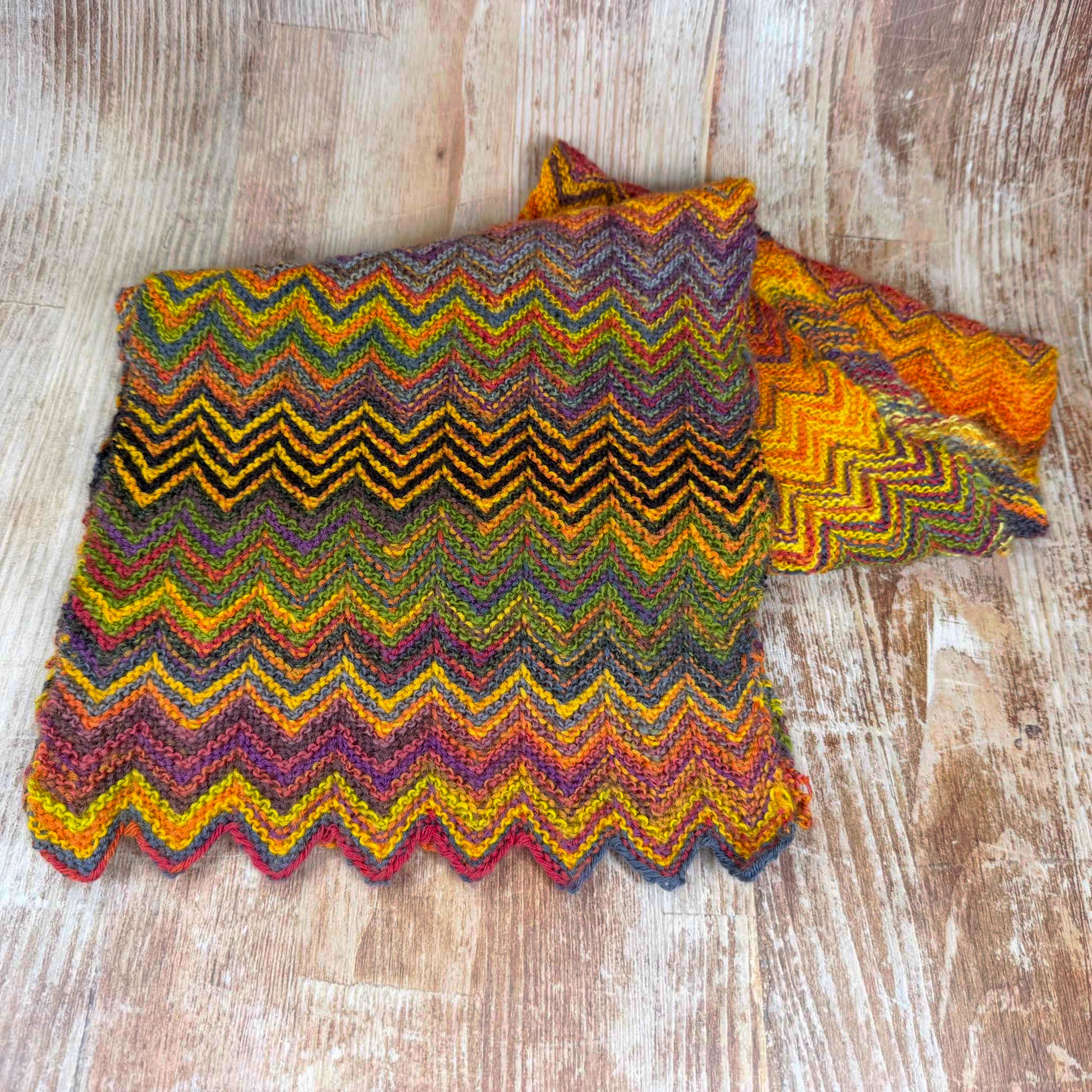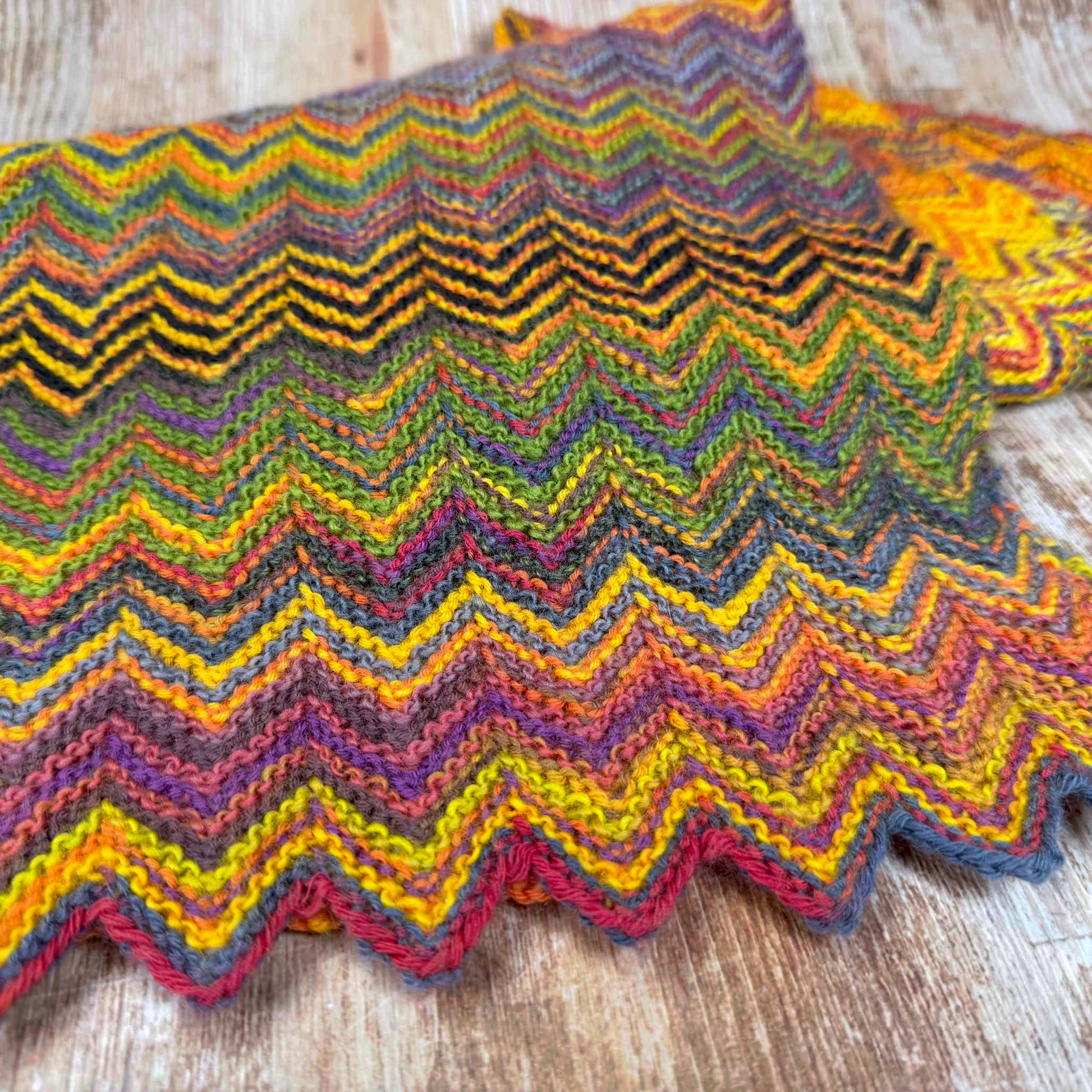 Handgestrickter Zackenschal aus feiner, wärmender Wolle mit charakteristischem Zackenmuster an Anfang und Ende. Jeder Schal ist ein Unikat, sorgfältig von Hand gefertigt und in verschiedenen Farbvarianten erhältlich.